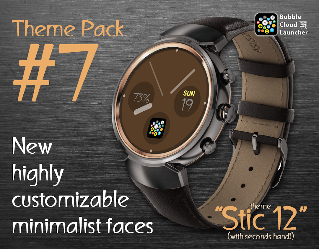এই থিম প্যাকটি Wear OS (সংস্করণ 9.54 বা উচ্চতর) এর জন্য বাবল ক্লাউড লঞ্চার এর সাথে কাজ করে। সবচেয়ে সাম্প্রতিক সংস্করণে প্রধান অ্যাপ আপডেট করুন: https://play.google.com/store/apps/details?id=dyna.logix.bookmarkbubbles
