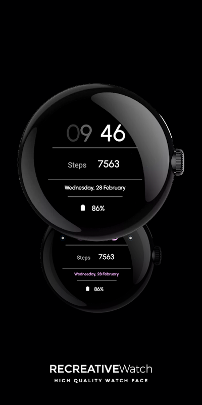 মিনিমালিস্ট Wear OS ঘড়ির মুখ: মসৃণ, সাধারণ ডিজাইন। একাধিক রঙের বৈচিত্র