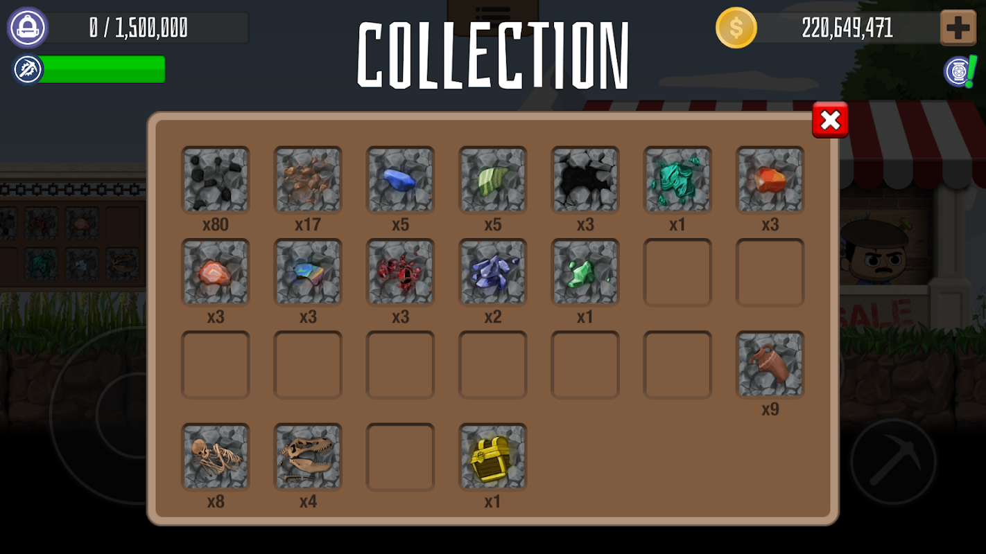 - Get 25 types of minerals, such as: coal, iron ore, oil, diamonds, antiques, chests, etc.