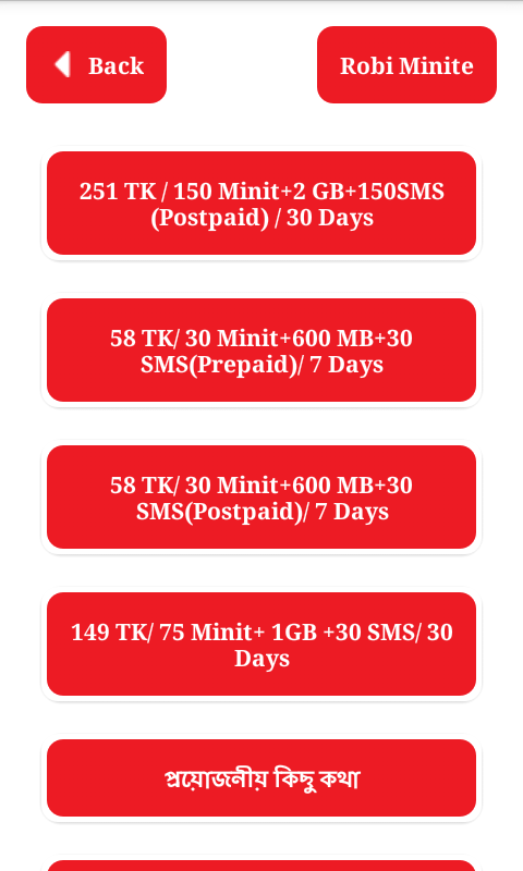 Minite package Robi - রবি মিনিট প্যাক 1.0