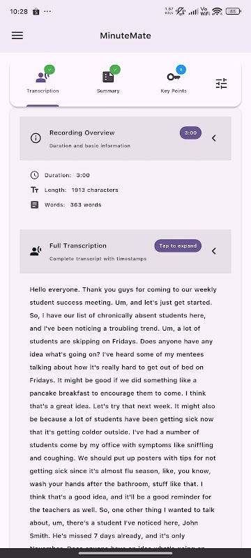 মিনিটমেটকে কথ্য শব্দগুলিকে মাত্র কয়েক সেকেন্ডের মধ্যে সঠিক, পাঠযোগ্য পাঠ্যে রূপান্তর করতে দিন।