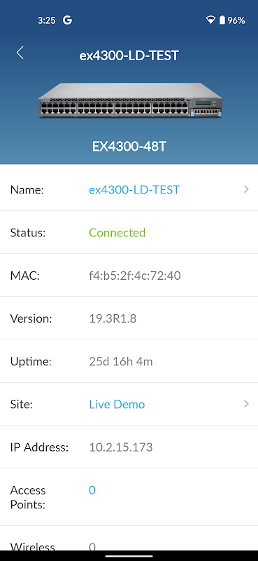 • ডিভাইসের বিশদ বিবরণ দেখুন যেমন নাম, ম্যাক, স্থিতি (সংযুক্ত/বিচ্ছিন্ন), ফার্মওয়্যার সংস্করণ এবং আপটাইম।
