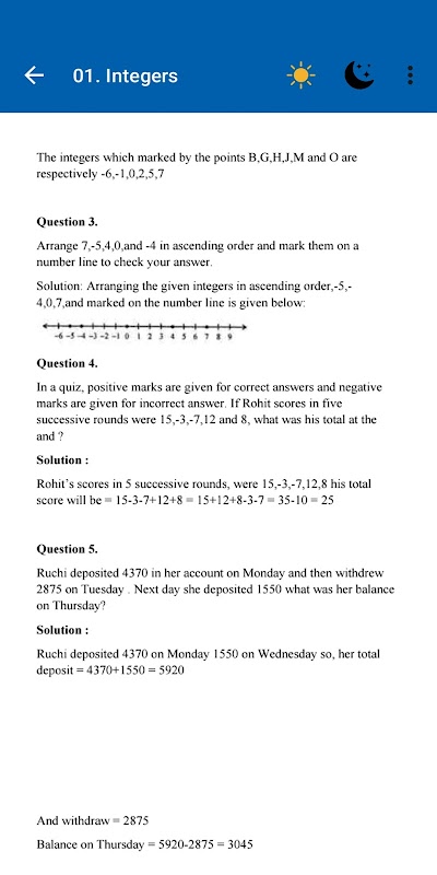 🔍 অধ্যায় অনুসারে সংগঠন: অনায়াসে অধ্যায় এবং বিষয়গুলির মাধ্যমে নেভিগেট করুন, আপনাকে আপনার মনোযোগের প্রয়োজন এমন নির্দিষ্ট ক্ষেত্রগুলিতে ফোকাস করতে সক্ষম করে৷ পূর্ণসংখ্যা এবং ভগ্নাংশ থেকে বীজগাণিতিক অভিব্যক্তি এবং ডেটা হ্যান্ডলিং পর্যন্ত, অ্যাপটি প্রতিটি অধ্যায়কে ব্যাপকভাবে কভার করে, আপনাকে একটি সামগ্রিক শিক্ষার অভিজ্ঞতা প্রদান করে।