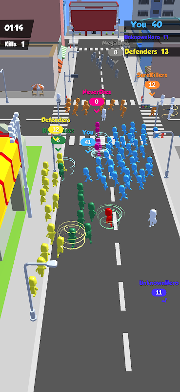 > প্রতিযোগিতা - অন্যান্য খেলোয়াড়দের ভিড়ের সাথে মাথা ঘোরা। শহরের নিয়ন্ত্রণ নিন এবং আপনার প্রতিপক্ষকে ছাড়িয়ে যান।