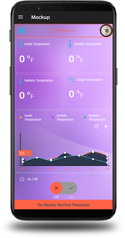 ক্যালোরি তাপস্থাপক ডিভাইস Android অ্যাপ্লিকেশনের জন্য UI 'তে Mockup