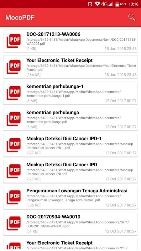 যে শব্দ উপর ভিত্তি করে, এই অ্যাপ্লিকেশন পিডিএফ ফাইল পড়তে একটি সহজ ব্যবহার প্রদান। শুধু আপনার অনুমতি স্টোরেজ অনুদান করুন, আপনি আপনার সমস্ত পিডিএফ ফাইল তালিকাভুক্ত করতে পারেন, এবং তারপর এই অ্যাপ্লিকেশনটি ব্যবহার করে এটি খুলুন।