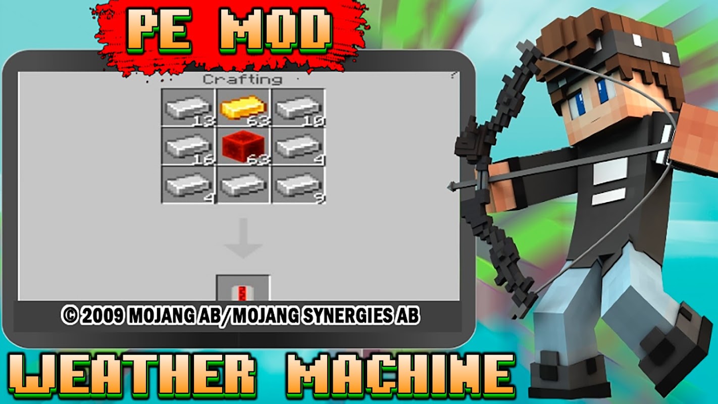 This is a weather machine mod and map that adds a changeabble weather machine and tornado mod. Tired of waiting for the rain to stop?, tired of being struck by a random lightning? or you’re just feeling lonely when it rains. Then this add-on is for you! This addon adds a machine called “Weather Machine“. And it’s craftable! You can use it in Survival Mode! The Weather Machine let’s you change the weather in-game. just load it up with a weather module and it will do the magic! All items are craftable. you can craft the Weather Machine and it’s modules. Hold the Weather Machine Item, then sneak for a very short time, then stand again. the Weather Machine will be placed in your position.