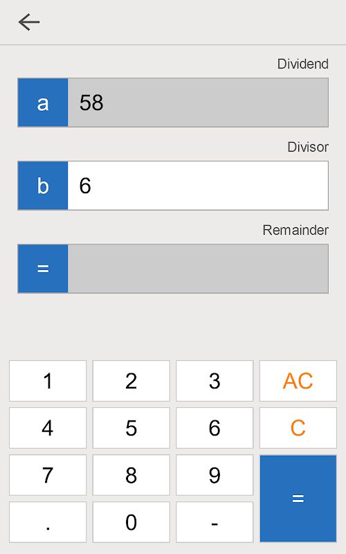 এই মডিউল ক্যালকুলেটরটি ব্যবহার করে একটি সংখ্যাকে অন্য সংখ্যা দিয়ে ভাগ করলে দ্রুত অবশিষ্টাংশ খুঁজে বের করুন।