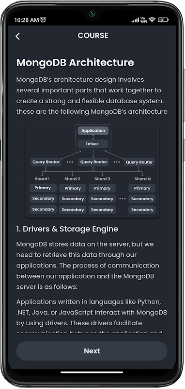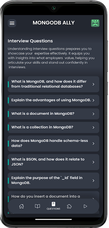 মঙ্গোডিবি অ্যালি আবিষ্কার করুন, পাকা বিকাশকারী এবং কৌতূহলী শিক্ষার্থীদের উভয়ের জন্যই আপনার সমস্ত-অন্তর্ভুক্ত মঙ্গোডিবি টিউটোরিয়াল অ্যাপ। আমাদের বিস্তৃত টিউটোরিয়াল লাইব্রেরির মাধ্যমে NoSQL ডাটাবেসগুলিতে ডুব দিন, MongoDB-এর অনন্য বৈশিষ্ট্যগুলি এবং মাস্টার ডেটা স্টোরেজ নীতিগুলি অন্বেষণ করুন৷ ইন্টারেক্টিভ উদাহরণ এবং অনুশীলনের সাথে হাতে-কলমে শেখার অভিজ্ঞতা নিন, যা আপনাকে বাস্তব-বিশ্বের পরিস্থিতিতে মঙ্গোডিবি বাস্তবায়নের জন্য গাইড করে। অফলাইন অ্যাক্সেস এবং হালকা/অন্ধকার থিম সহ, আপনি যে কোনও সময়, যে কোনও জায়গায় MongoDB শিখতে পারেন। NoSQL ডাটাবেসের সম্পূর্ণ সম্ভাবনা উন্মোচন করুন - আজই MongoDB অ্যালি ডাউনলোড করুন!