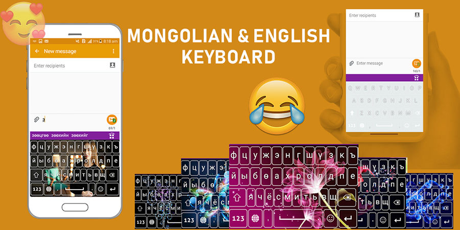 Mongolian Keyboard 2019, Mongolian English Keyboard with Custom Themes.