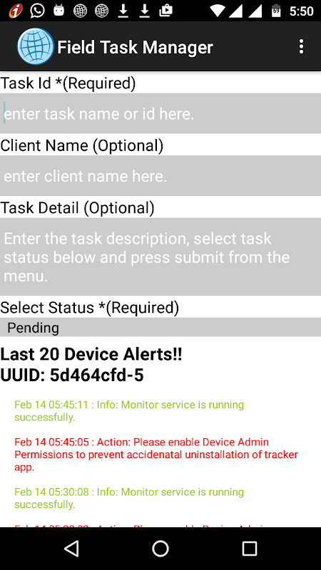 ফিল্ড টাস্ক ম্যানেজার নিরীক্ষণ করতে পারে তা নিশ্চিত service.to এটা আপ & সব সময় চলমান.