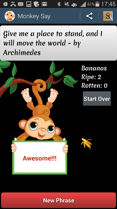 Each word guess you make correctly earns you a ripe banana and each wrong guess gets you a rotten one.