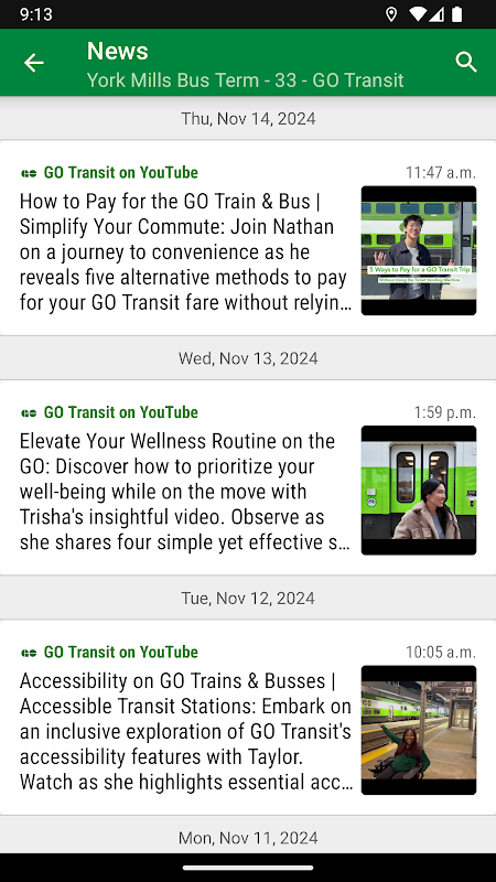 - চালু: যান ট্রানজিট, GRT, HSR, MiWay, OC Transpo, TTC, YRT Viva, নায়াগ্রা অঞ্চল, সেন্ট ক্যাথারিনস…