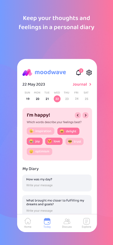 আপনার সংবেদনশীল অবস্থা নির্বাচন করে আপনার দিন শুরু করুন, আপনাকে সময়ের সাথে সাথে আপনার আবেগগুলির মধ্যে অন্তর্দৃষ্টি পেতে অনুমতি দেয়।
