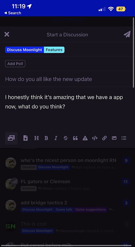 মুনলাইট গেম সাইটের জন্য একটি মজার ছোট চ্যাট আপ
