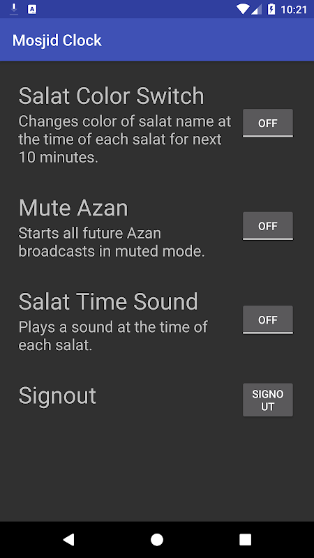 The app is used as a clock app for Mosque working in synchronization with all the clients. The clock has the ability to show Namaz Times, Sunset/Sunrise Times, and Weather conditions for each Namaz time.