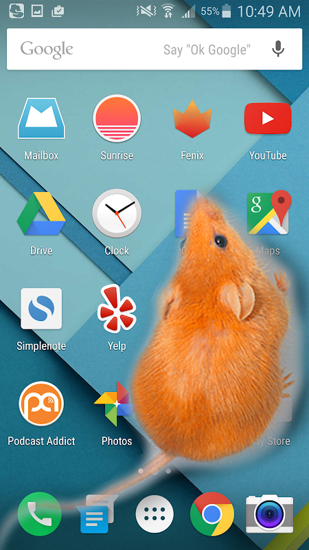 Mouse on screen is a scary animation with a mouse on the phone screen. If your friends are scared of mouses and rats - this is the best way to scare them! Take friend's phone and insert virtual mice inside his phone. He can use phone normally and suddenly from the edge of the screen scary mouse comes out! Horrifying animation of a big rat will be always displayed in the foreground. No matter what your friend will be doing - he will see huge mouse on the screen!