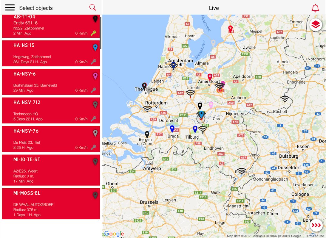 The free Moving Intelligence app allows you, the user of Moving Intelligence, to have insight of your tripadministration and of the current location of your object (s). In addition, the app offers several convenient options for using your immobilizer.