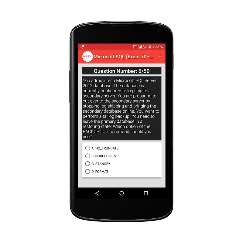 এমএস এসকিউএল ডাটাবেস প্র্যাকটিস পরীক্ষার অ্যাপ্লিকেশনটি পরিচালনাকারী যে কোনও যিনি এমএস এসকিউএল ডাটাবেস ইনফ্রাস্ট্রাকচার (পরীক্ষা 70-764) প্রশাসনের জন্য প্রস্তুতি নিচ্ছেন এবং তাদের জ্ঞান মূল্যায়ন করতে চান, তাদের দুর্বলতা সনাক্ত করুন এবং পরীক্ষাটি সাফ করুন।