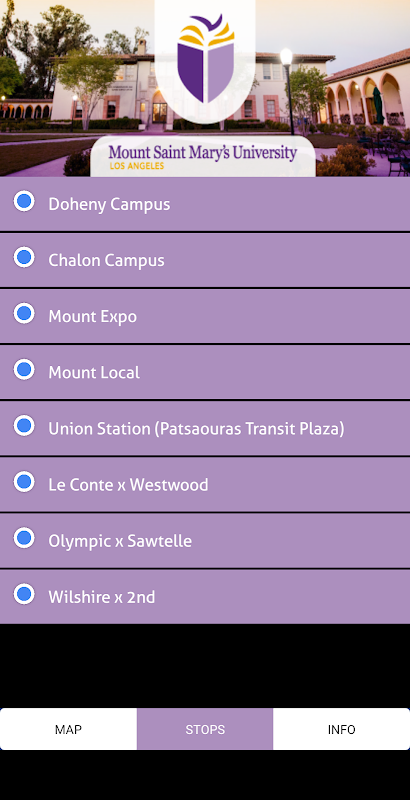 দোহেনি ক্যাম্পাস থেকে ইউনিয়ন স্টেশন, এলএর কেন্দ্রীয় ট্রেন টার্মিনাল এবং ট্রাভেল হাব, সেইসাথে চলন ক্যাম্পাস থেকে লস এঞ্জেলেসের পশ্চিম দিকের জনপ্রিয় স্পটগুলিতে শিক্ষার্থীরা প্রতিটি ক্যাম্পাসে এবং মাউন্ট শাটলে চড়ে যেতে পারে ।
