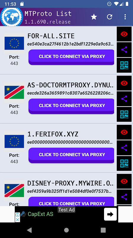 টেলিগ্রাম জন্য MTPRoto তালিকা