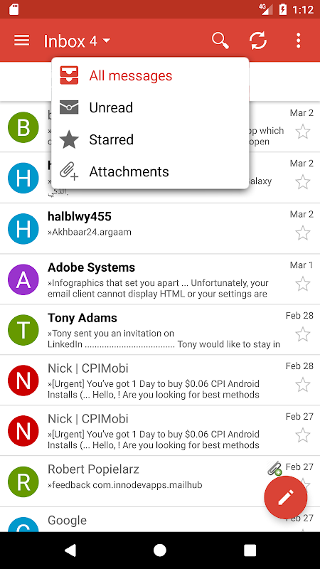 - Unified inbox to read all emails in the same screen