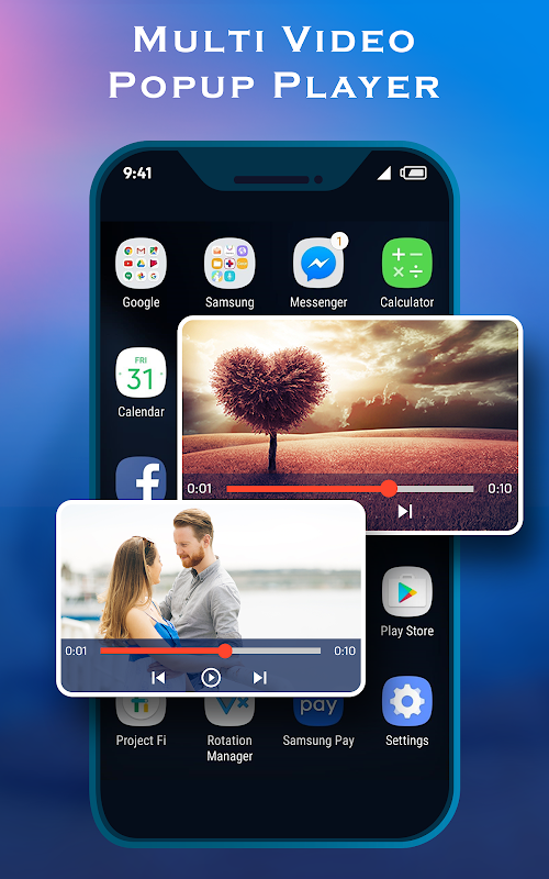 Multi Video Popup Player is a smart application which is play videos with a single floating point. Application allows users to adjust videos on popup screen with view video list, So change whenever you want to change video clip from the list. Play videos on your mobile screen with float point with change view to next or back videos. Play popup multiple videos on a single float screen with your choice.