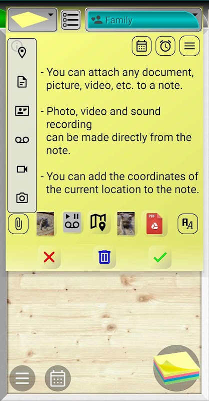 - সরাসরি নোট থেকে, একটি ফটো এবং ভিডিও তুলুন এবং এটি সাধারণ গ্যালারিতে নয়, শুধুমাত্র এই অ্যাপ্লিকেশনটিতে সংরক্ষণ করুন। আপনি একটি নোটে যেকোন সংখ্যক ফটো বা ভিডিও সংযুক্ত করতে পারেন এবং সেগুলিতে দ্রুত অ্যাক্সেস পেতে পারেন৷