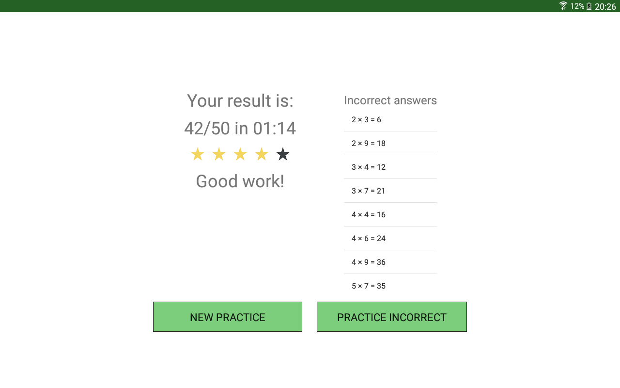 প্র্যাকটিস গুণ টেবিল 1 থেকে 15 থেকে আপনি প্রতিটি আলাদাভাবে অথবা সব একসাথে অনুশীলন করতে পারেন।