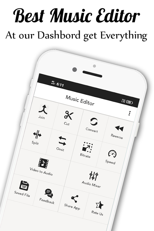 The most powerful and complete Music Editor! It has all the features you would ever want in an MP3 Editor! Trim Audio – MP3 Cutter for Ringtones, Merge two or more audio files, Convert from one format to another - MP3, AAC, WAV, M4A… and the list of app features goes on!