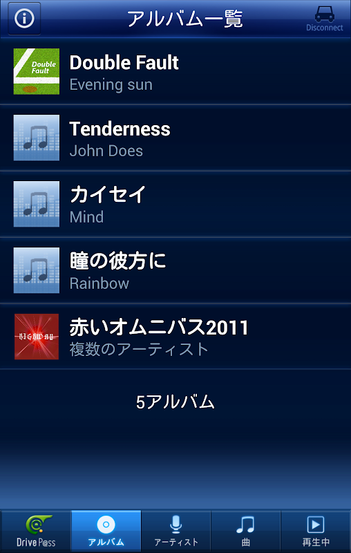 "ড্রাইভ P@ss" সমর্থন করে এমন একটি গাড়ী নেভিগেশন সিস্টেমে ইনস্টল করা "ড্রাইভ P@ss এর জন্য মিউজিক প্লেয়ার" এর সাথে একটি অ্যান্ড্রয়েড স্মার্টফোন সংযোগ করে, আপনি আপনার গাড়ির স্পিকারের মাধ্যমে দুর্দান্ত শব্দের সাথে আপনার স্বাভাবিক সঙ্গীত উপভোগ করতে পারেন৷