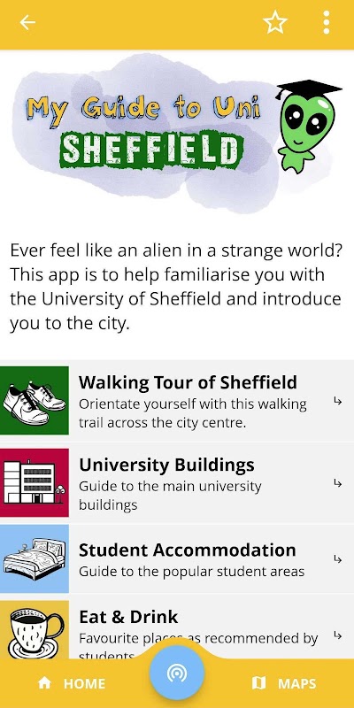 কখনও একটি বিচিত্র বিশ্বের একটি এলিয়েনের মত মনে হয়? এই অ্যাপটি আপনাকে শেফিল্ড বিশ্ববিদ্যালয়ের সাথে পরিচিত করতে এবং আপনাকে শহরের সাথে পরিচয় করিয়ে দিতে সহায়তা করে।