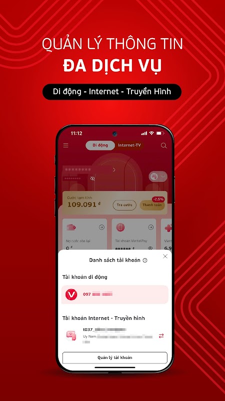 অ্যাকাউন্টের বিস্তারিত তথ্য এবং প্যাকেজগুলি দেখুন: মোবাইল, ইন্টারনেট, টেলিভিশন... ডেটা, ভয়েস, এসএমএস প্যাকেজের জন্য নিবন্ধন করুন অনেকগুলি বিকল্প সহ এবং দ্রুত মাত্র একটি স্পর্শে।