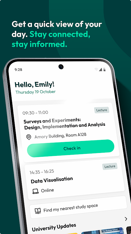 MyExeter: আপনার বিশ্ববিদ্যালয় যাত্রা জুড়ে আপনাকে সমর্থন করার জন্য ডিজাইন করা অ্যাপ। শিক্ষার্থীদের সাথে, শিক্ষার্থীদের জন্য, রিয়েল-টাইম ডেটা এবং সহজে দরকারী তথ্য অ্যাক্সেস করার জন্য অন্তর্নির্মিত।