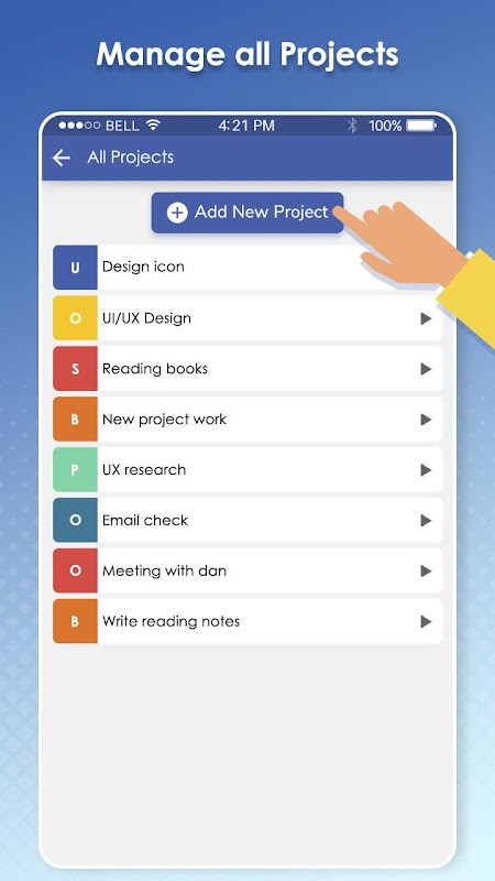 - অ্যাপ্লিকেশনটি আপনার কাজগুলি সংগঠিত করতে, আপনার উত্পাদনশীল সময়গুলি পরিচালনা করতে, আপনার প্রকল্পের তালিকা পরিচালনা করতে এবং আপনার উত্পাদনশীলতা অনুকূল করতে বিশেষভাবে বিকাশিত। এটি সুন্দরভাবে ডিজাইন করা হয়েছে, সহজ এবং দ্রুত।