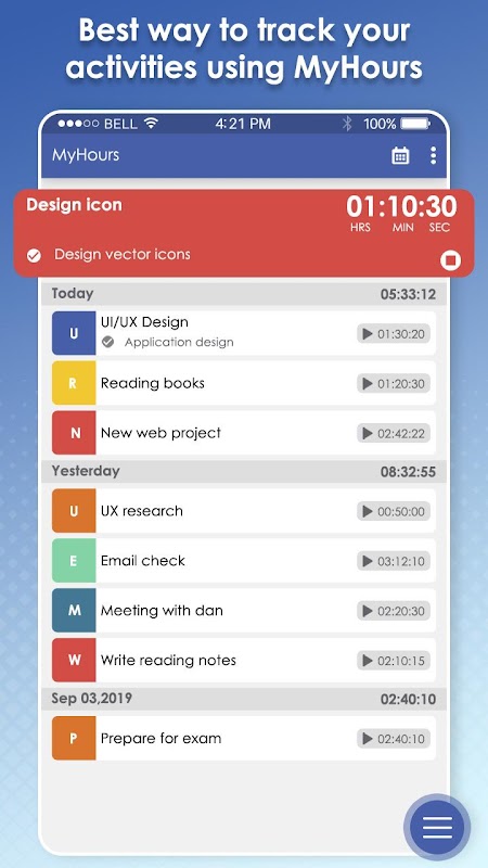 - আপনার সময় পরিচালনার উন্নতি করুন, আপনার ক্রিয়াকলাপ ট্র্যাক করার সর্বোত্তম উপায়