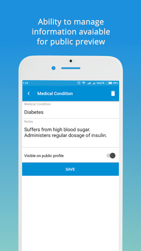 জরুরি অবস্থা পরিচিতি, মর্মস্থল, এলার্জি, ওষুধ, রক্তের গ্রুপ, অঙ্গ দাতা, বীমা, ডাক্তার এবং আরো অনেক কিছু সম্পর্কে প্রতিটি প্রফাইল দোকান তথ্যের জন্য ##