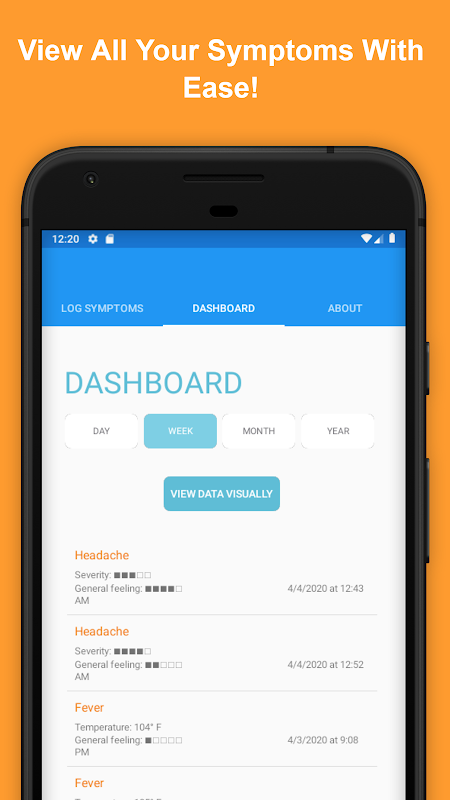 এই অ্যাপ্লিকেশনটিতে, আপনি কোনও ডিজিটাল নোটবুকের মতো অনুভব করছেন এমন কোনও উপসর্গ লগ করতে পারেন! আপনার চিকিত্সা পেশাদারকে পরে সহায়তা করার জন্য আপনার লক্ষণগুলি নির্ভুলভাবে ট্র্যাক করার এটি একটি সহজ উপায়।