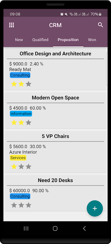 - ওডু সিআরএম: আপনার সুযোগগুলি ট্র্যাক করতে আপনার ওডু সিআরএম অ্যাক্সেস করুন।