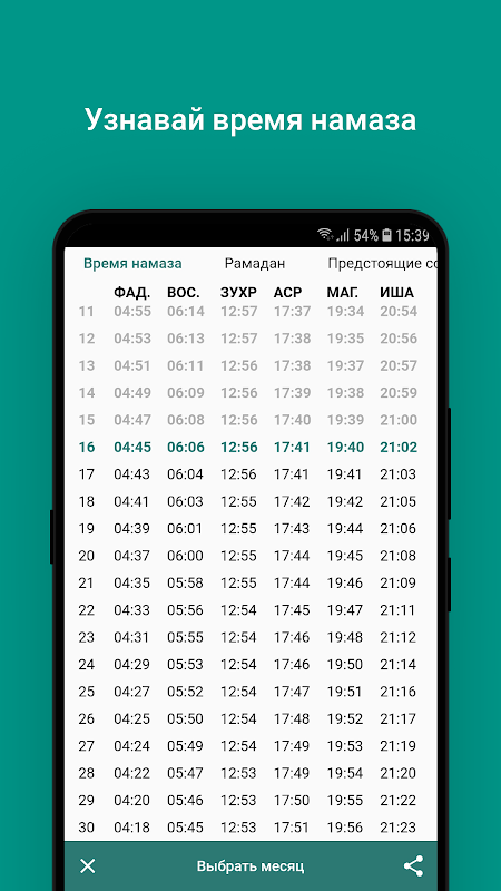 অফলাইনে প্রার্থনার সময়সূচী দেখুন। মূল জিনিসটি হ'ল যদি আপনি নিজের শহরটি বেছে নেওয়ার সময় ইন্টারনেটে সংযুক্ত থাকেন তবে প্রোগ্রামটি বার্ষিক সময়সূচীটি ডাউনলোড করবে। নামাজ ও রোজার সময়গুলি মুফতিয়াত.কেজ থেকে নেওয়া হয় এবং সর্বশেষ পরিবর্তনের সাথে মিল রাখে।