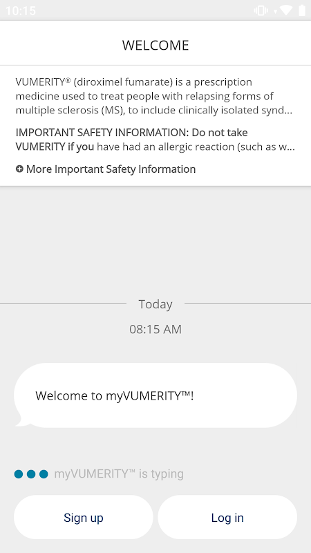 নিয়মিতভাবে MyVUMERITY ব্যবহার করে, আপনি আপনার VUMERITY চিকিত্সার উপর নজর রাখতে পারেন এবং আপনার স্বাস্থ্যসেবা সরবরাহকারীর সাথে উত্পাদনশীল কথোপকথনের জন্য আরও ভালভাবে প্রস্তুত করতে পারেন। গুরুত্বপূর্ণ সুরক্ষা তথ্যের জন্য, দয়া করে https://www.VUMERITY.com/pdfs/full-prescribing-info.pdf এবং রোগীর তথ্য https://www.VUMERITY.com/pdfs/patient-inifications- এ সম্পূর্ণ নির্ধারিত তথ্য দেখুন। পিডিএফ।