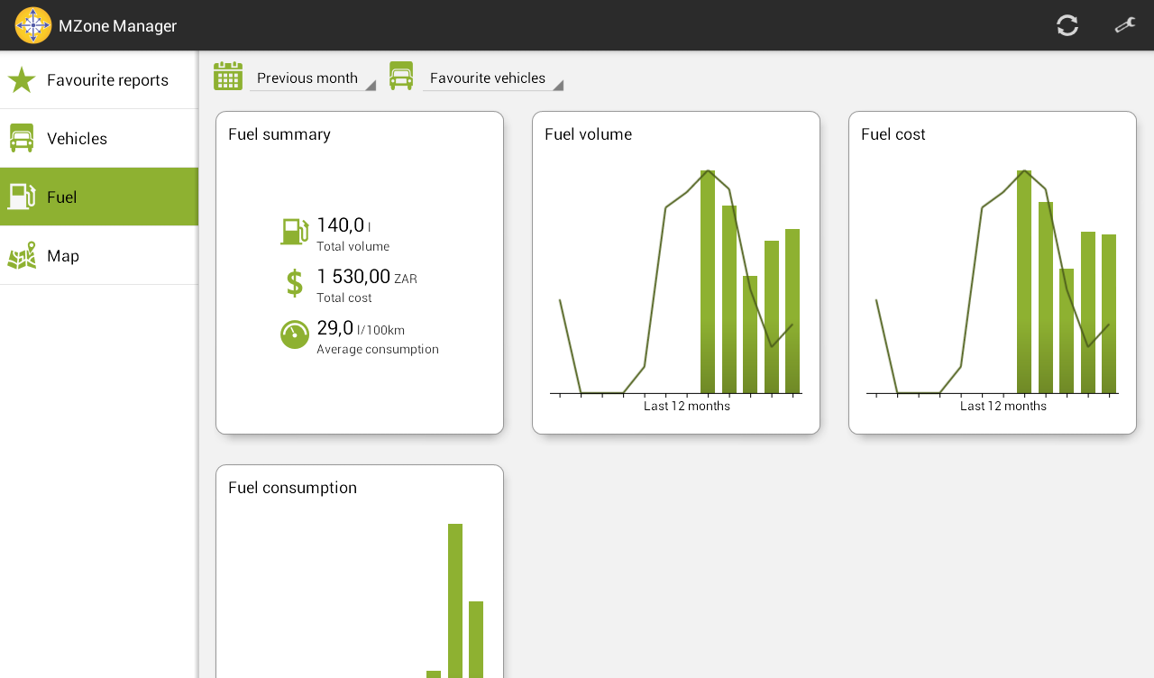 The application is able to provide real-time trip data with visibility of all exceptions generated for the trip, with fuel consumption statistics. When viewing a fleet group, reports allows easy ratings of drivers and vehicles for better resource allocation.