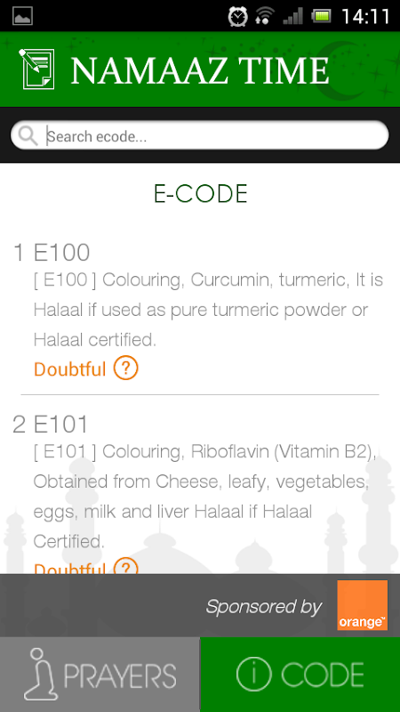 তাদের নিজ নিজ বিবরণ সহ ই-সঙ্কেত (খাদ্য additives) এর একটি তালিকা প্রদান করা হয় এবং তারা 3 ভাগে শ্রেণীবদ্ধ করা হয়: হালাল, হারাম এবং সন্দিহান.