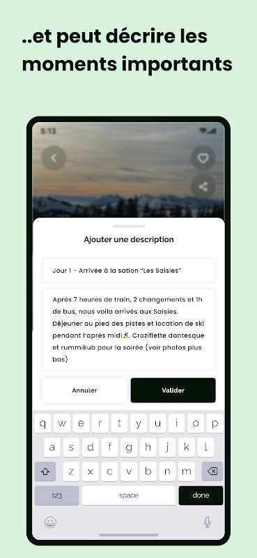 নারা আপনাকে আপনার প্রিয়জনদের সাথে অভিজ্ঞতার স্মৃতিগুলি বর্ণনা করতে এবং বর্ণনা, ফটো, ভিডিও ব্যবহার করে আপনার চারপাশের লোকদের সাথে ভাগ করে নেওয়ার অনুমতি দেয়৷