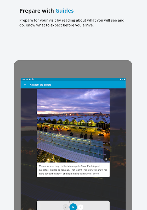 মিনিয়াপোলিস-সেন্টের একটি সফরের জন্য প্রস্তুত বিমানবন্দরের বিভিন্ন অংশ সম্পর্কে ভিডিও দেখার মাধ্যমে পৌল বিমানবন্দর, সামাজিক বিবৃতি পড়তে, আপনার নিজস্ব বিমানবন্দর সময়সূচী তৈরি করে, এমএসপি মিলিয়ে খেলা, অভ্যন্তরীণ টিপ্স পরীক্ষা করা, এবং আরও অনেক কিছু!