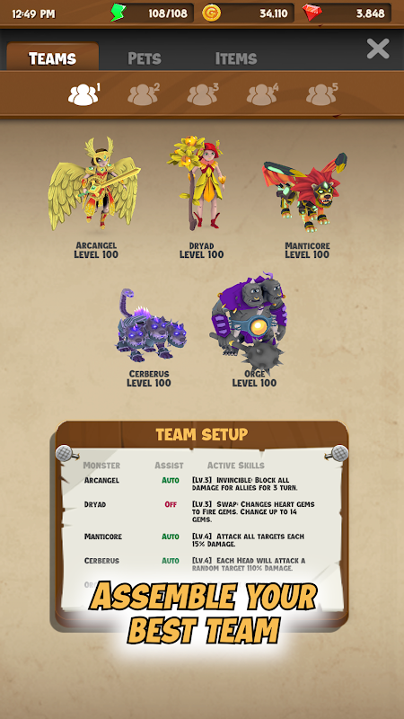 এই ম্যাচ 3 অ্যাকশন গেম যেখানে খেলোয়াড়রা একটি নির্দিষ্ট সময়ের মধ্যে ক্রমাগত রত্নগুলি সরানোর মাধ্যমে কম্বো তৈরি করে। আরও কম্বো আরও ক্ষতি যোগ করে যা আপনার দানবদের যুদ্ধে তাদের দক্ষতা নিক্ষেপ করতে দেয়। যুদ্ধের সময় আপনার দক্ষতা একটি বড় পার্থক্য তৈরি করবে! এখনই দানব সংগ্রহ করা শুরু করুন এবং আপনার খেলার স্টাইল অনুসারে চূড়ান্ত দলকে একত্রিত করুন!