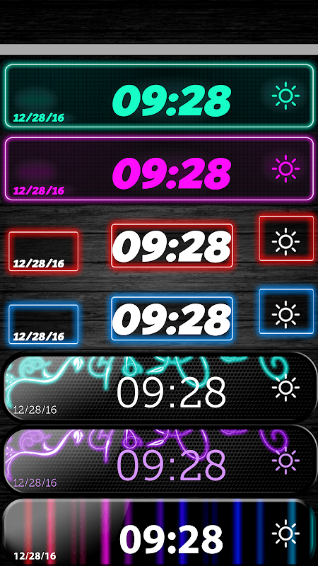 ★ Neon timer lets you choose from ten designs, skins, hands and digits.