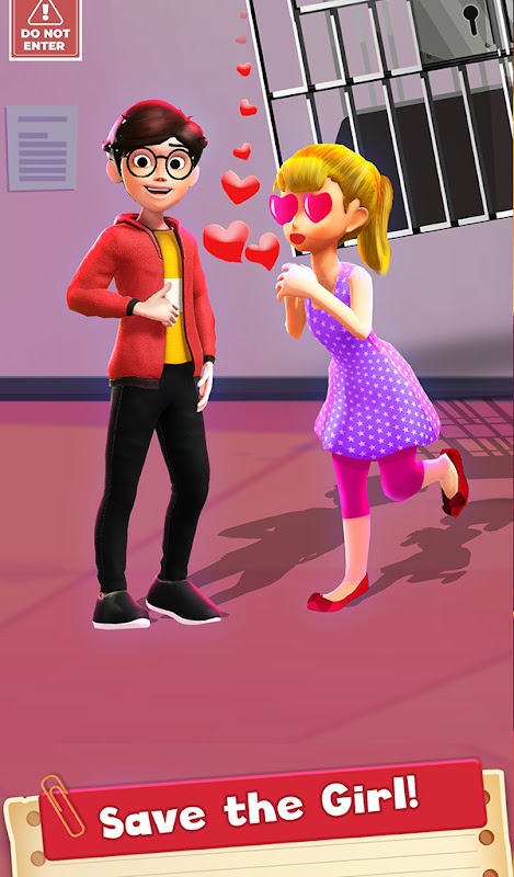এই সেভ দ্য গার্ল গেমটি নতুন লঞ্চ করা হয়েছে এবং অন্যান্য সমস্ত নৈমিত্তিক গেম থেকে আলাদা৷ এই মেয়েটিকে উদ্ধারে, আপনি সবচেয়ে বাস্তবসম্মত 3D পরিবেশ এবং Nerd এবং Bully এর মধ্যে মনোরম দৃশ্যের অভিজ্ঞতা পাবেন। আপনার মেয়েটি আপনাকে শনাক্ত করার আগে তাণ্ডব থেকে বাঁচান। বুলি স্কুলের চারপাশে ঘুরে বেড়াচ্ছে এবং আপনাকে শনাক্ত করবে, কিন্তু তীক্ষ্ণ হোন এবং আপনার ভালবাসাকে বাঁচাতে সমস্ত রূপালী এবং সোনালি চাবি সংগ্রহ করুন। এই Nerd বনাম বুলি ধারণাটি অত্যন্ত আকর্ষণীয় এবং হাইড এন সিক গেমের সাথে প্রাসঙ্গিক যেখানে আপনি তাকে বুলি থেকে উদ্ধার করার পরে আপনার ভালবাসার সাথে দেখা করেন।