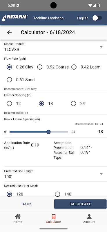 নেটাফিম টেকলাইন ক্যালকুলেটর ল্যান্ডস্কেপ ডিজাইন, প্রকল্প সরবরাহ এবং গণনা নির্ধারণের জন্য একটি নির্দেশিকা অফার করে। এর মধ্যে রয়েছে মাটি, গাছপালা, ড্রিপলাইন বসানো, সেচকৃত এলাকা, চাপ, প্রবাহের হার এবং বিকিরণকারী ব্যবধান।