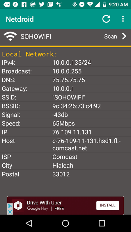 Netoid ফাস্ট বহু-থ্রেডেড নেটওয়ার্কের ইউটিলিটি। এটা তোলে নেটওয়ার্কের স্ক্যান সঞ্চালিত, যে হোস্ট IP এবং MAC ঠিকানা সনাক্ত। পোর্ট স্ক্যানিং, সনাক্ত সুপরিচিত পোর্ট এবং সেবা পোর্ট চলমান। স্মার্টফোন সংযোগের প্রদর্শনের জন্য পিং এবং netstat কমান্ড: উপরন্তু, বিভিন্ন নেটওয়ার্ক ইউটিলিটি মত পরীক্ষামূলক সংযোগ জন্য অ্যাপ্লিকেশন মধ্যে প্রদান করা হয়। অবশেষে, netoid প্রদর্শন সব আইপি, নেটওয়ার্ক, এবং ওয়াইফাই স্থানীয় নেটওয়ার্কে কনফিগারেশন।
